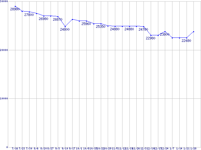 | LGA1156 (L3キャッシュ8MB,Quad Core,Hyper-Threading,TDP 82〜95W)の最安値推移 |