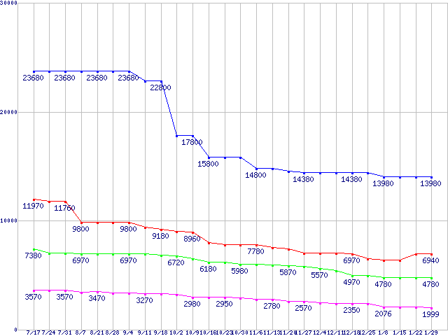 | ※製品名をクリックすると個別のグラフを表示します ※点線部は販売店が確認できなかった、または調査データがないことを示します | |