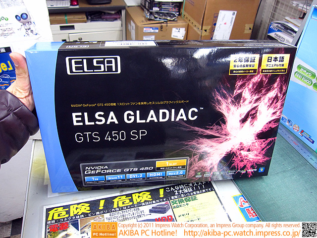 AKIBA PC Hotline! 2011年1月29日号今週見つけた新製品:ビデオカード [拡大画像]ELSA GLADIAC GTS 450 SP 1GB(GD450-1GERSP)前の画像←[記事に戻る]