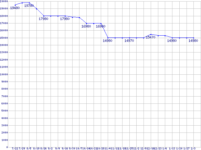 | HDD 80GB〜100GB未満の最安値推移 |