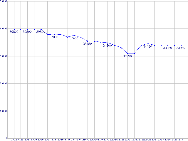 | HDD 160〜200GB未満の最安値推移 |