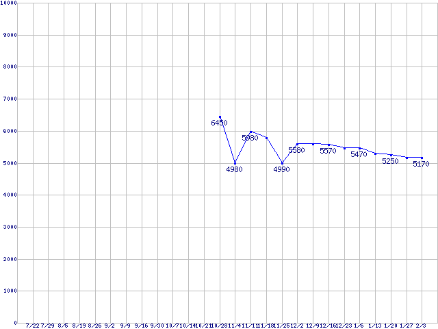 | WD Caviar Blue (7200rpm,6Gb/s)の最安値推移 |