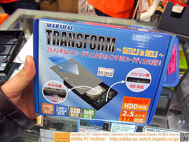 ![]() | AKIBA PC Hotline! 2011年2月5日号 今週見つけた新製品:リムーバブルHDDケース/外付けケースほか [拡大画像]MARSHAL TRANSFORM 〜SATA2.5 to IDE3.5〜(MAL-2725SBK) |