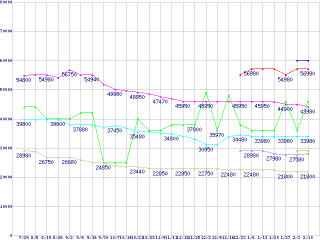 | ※製品名をクリックすると個別のグラフを表示します ※点線部は販売店が確認できなかった、または調査データがないことを示します | |