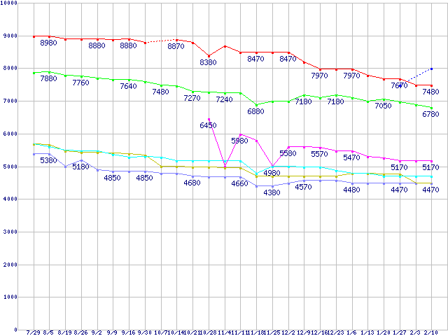 | ※製品名をクリックすると個別のグラフを表示します ※点線部は販売店が確認できなかった、または調査データがないことを示します | |