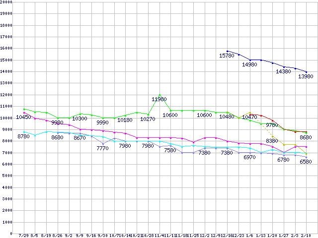 | ※製品名をクリックすると個別のグラフを表示します ※点線部は販売店が確認できなかった、または調査データがないことを示します | |