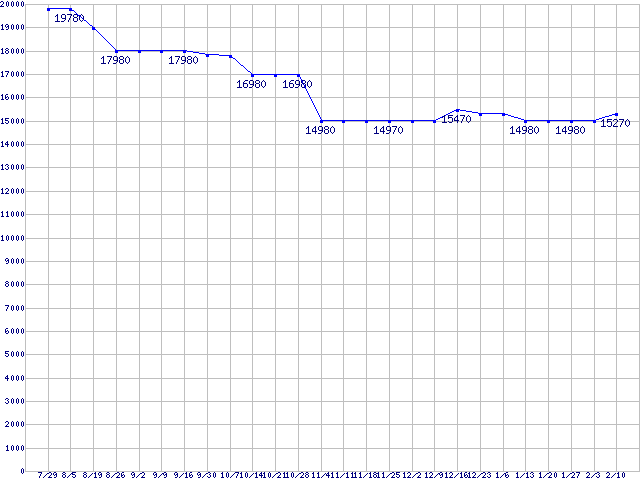 | ※製品名をクリックすると個別のグラフを表示します ※点線部は販売店が確認できなかった、または調査データがないことを示します |