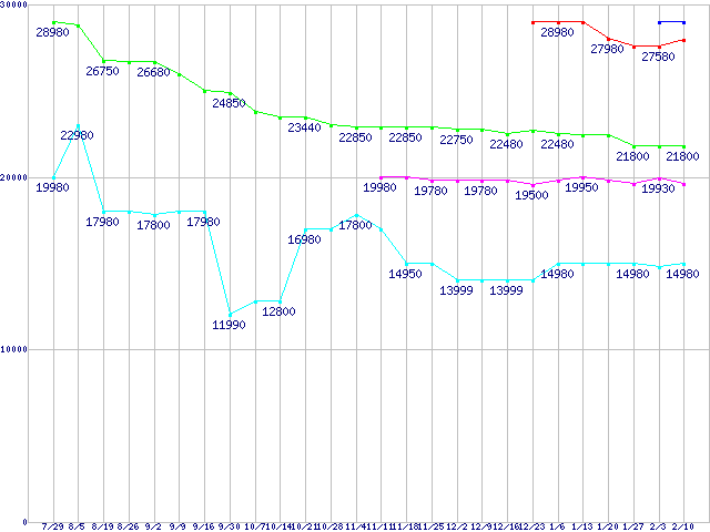 | ※製品名をクリックすると個別のグラフを表示します ※点線部は販売店が確認できなかった、または調査データがないことを示します | |