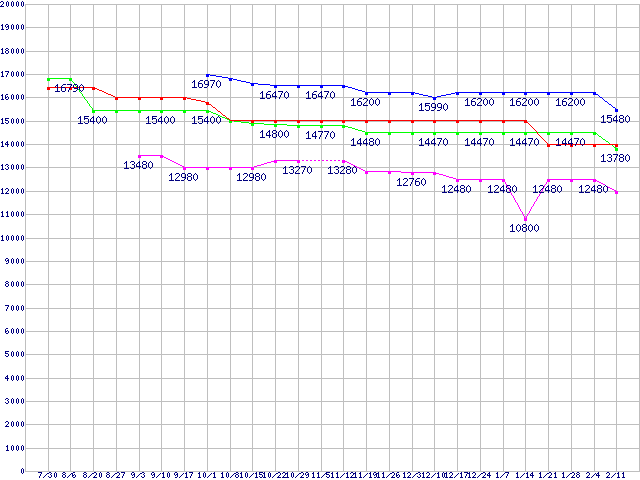 | Socket AM3 (HyperTransport 3.0,Quad Core)の最安値推移 |