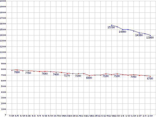 | WD Caviar Black (7200rpm,6Gb/s)の最安値推移 |