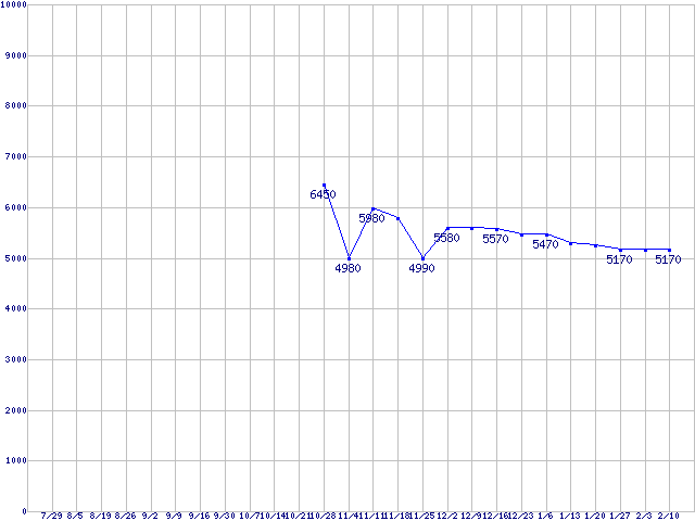 | WD Caviar Blue (7200rpm,6Gb/s)の最安値推移 |