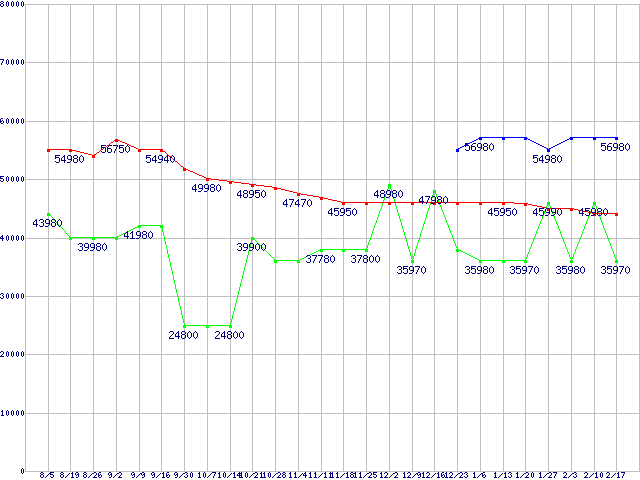 | ※製品名をクリックすると個別のグラフを表示します ※点線部は販売店が確認できなかった、または調査データがないことを示します | |