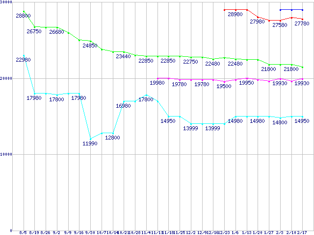 | ※製品名をクリックすると個別のグラフを表示します ※点線部は販売店が確認できなかった、または調査データがないことを示します | |