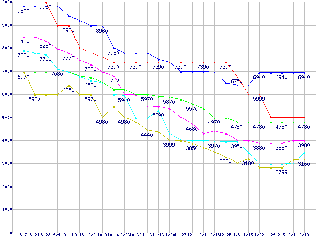 | ※製品名をクリックすると個別のグラフを表示します ※点線部は販売店が確認できなかった、または調査データがないことを示します | |