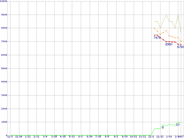 0S03085 (750GB,8MB)の価格推移↑前グラフ↓次グラフ(2009年12月3日〜2011年2月17日)※このグラフは過去のデータも税率5%相当に調整した税込み相当額のグラフです。●関連グラフHDD/SSD主要製品の最安値推移HDD/SSD主要製品(最安値1万円未満)の最安値推移HDD 750GB〜1TB未満の最安値推移TRAVELSTAR (5400rpm,3Gb/s,2.5インチ)の最安値推移●凡例最安値(点線部は販売店未確認または未調査)平均値最高値ショップ数