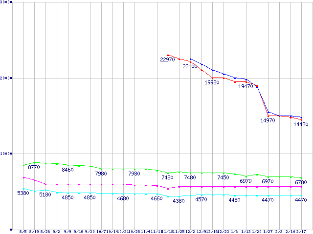 | ※製品名をクリックすると個別のグラフを表示します ※点線部は販売店が確認できなかった、または調査データがないことを示します | |