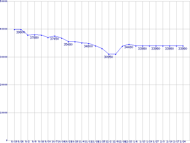 | ※製品名をクリックすると個別のグラフを表示します ※点線部は販売店が確認できなかった、または調査データがないことを示します |