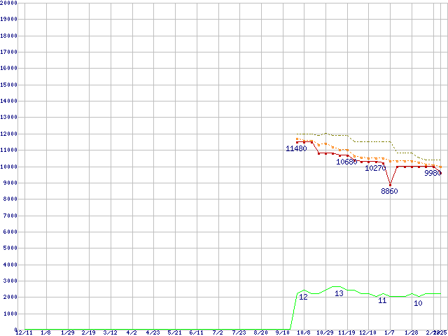 Athlon II X4 645 (3.1GHz,L2 512KB×4,TDP 95W)の価格推移↑前グラフ↓次グラフ(2009年12月11日〜2011年2月25日)※このグラフは過去のデータも税率5%相当に調整した税込み相当額のグラフです。●関連グラフCPU主要製品の最安値推移CPU主要製品(最安値1万円未満)の最安値推移AMD系CPUの最安値推移Socket AM3 (Quad Core)の最安値推移●凡例最安値(点線部は販売店未確認または未調査)平均値最高値ショップ数