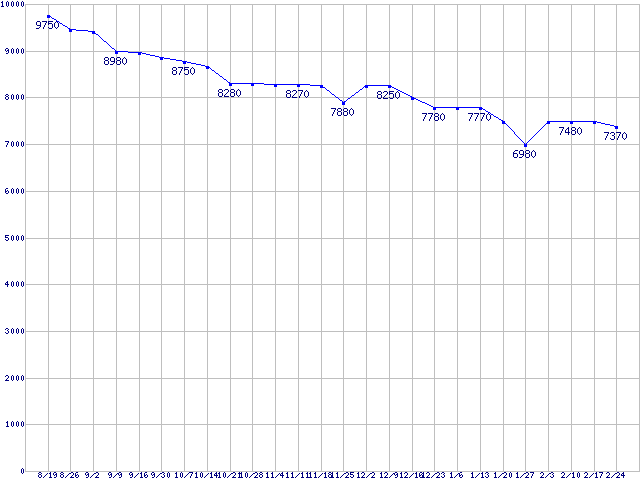 | Barracuda LP (5900rpm,3Gb/s)の最安値推移 |