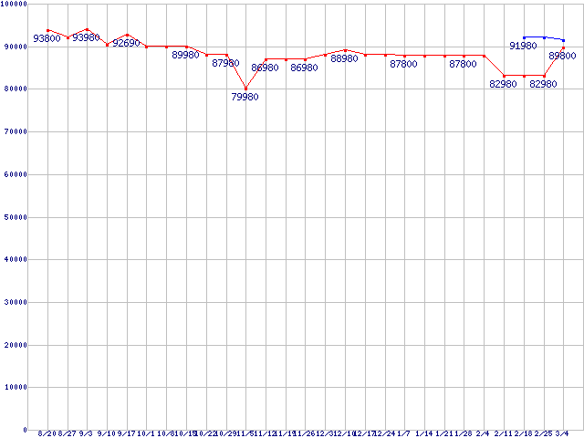 | CPU主要製品(最安値6万円以上)の最安値推移 |