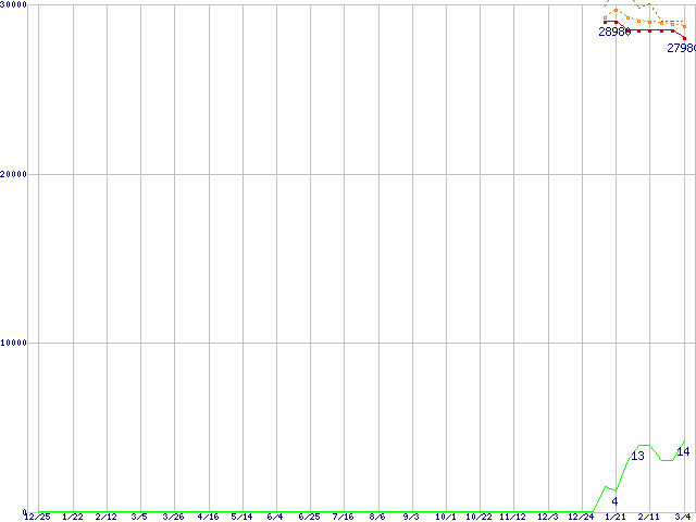 Core i7-2600K (3.40GHz)の価格推移↑前グラフ↓次グラフ(2009年12月25日〜2011年3月4日)※このグラフは過去のデータも税率5%相当に調整した税込み相当額のグラフです。●関連グラフCPU主要製品の最安値推移CPU主要製品(最安値2万円〜3万円未満)の最安値推移Intel系CPUの最安値推移LGA1155 (Smart Cache 8MB,Quad Core,GPU内蔵,Hyper-Threading,TDP 95W)の最安値推移●凡例最安値(点線部は販売店未確認または未調査)平均値最高値ショップ数