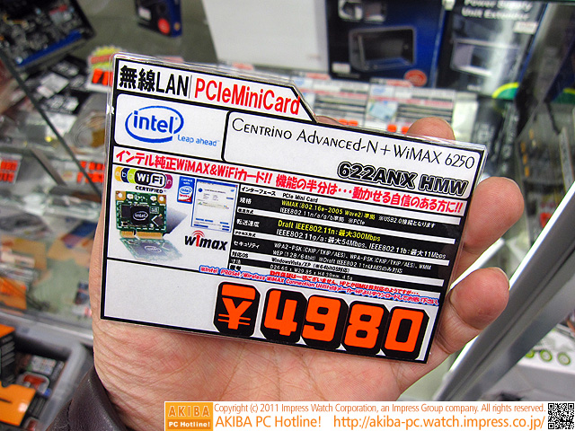AKIBA PC Hotline! 2011年3月5日号今週見つけた新製品:ネットワーク関連機器 [拡大画像]Intel Centrino Advanced-N + WiMAX 6250(622ANX HMW)前の画像←[記事に戻る]