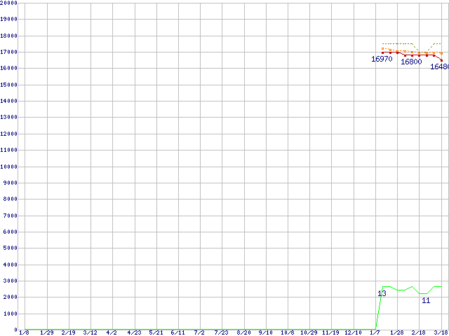 Core i5-2400 (3.10GHz,TDP 95W)の価格推移↑前グラフ↓次グラフ(2010年1月8日〜2011年3月18日)※このグラフは過去のデータも税率5%相当に調整した税込み相当額のグラフです。●関連グラフCPU主要製品の最安値推移CPU主要製品(最安値1万円〜2万円未満)の最安値推移Intel系CPUの最安値推移LGA1155 (Smart Cache 6MB,Quad Core,GPU内蔵)の最安値推移●凡例最安値(点線部は販売店未確認または未調査)平均値最高値ショップ数