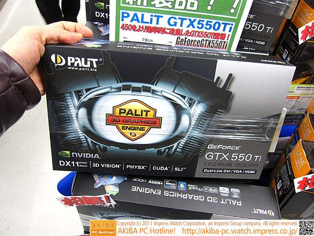 ![]() | AKIBA PC Hotline! 2011年3月19日号 今週見つけた新製品:ビデオカード [拡大画像]Palit Microsystems GeForce GTX 550 Ti Sonic 1024MB GDDR5(NE5X55TSHD09-1160F) Palit Microsystems GeForce GTX 550 Ti 1024MB GDDR5(NE5X55T0HD09-1061F) |