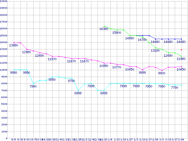 | ※製品名をクリックすると個別のグラフを表示します ※点線部は販売店が確認できなかった、または調査データがないことを示します | |