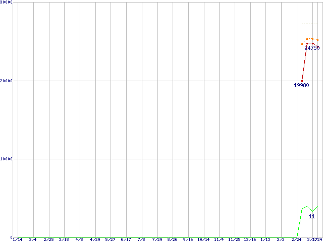 SSDSC2MH120A2K5 (120GB,MLC)の価格推移↑前グラフ↓次グラフ(2010年1月14日〜2011年3月24日)※このグラフは過去のデータも税率5%相当に調整した税込み相当額のグラフです。●関連グラフHDD/SSD主要製品の最安値推移HDD/SSD主要製品(最安値2万円以上)の最安値推移HDD 100〜160GB未満の最安値推移SSD 510 (SSD,6Gbps,2.5インチ,リード500〜450MB/s・ライト315〜210MB/s)の最安値推移●凡例最安値(点線部は販売店未確認または未調査)平均値最高値ショップ数