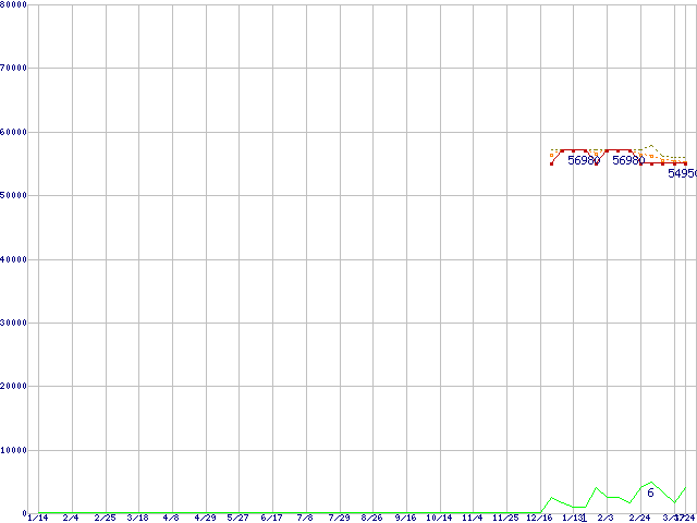 PX-256M2S (256GB,MLC)の価格推移↑前グラフ↓次グラフ(2010年1月14日〜2011年3月24日)※このグラフは過去のデータも税率5%相当に調整した税込み相当額のグラフです。●関連グラフHDD/SSD主要製品の最安値推移HDD/SSD主要製品(最安値2万円以上)の最安値推移HDD 250〜300GB未満の最安値推移M2S (SSD,6Gbps,2.5インチ,リード400〜300MB/s・ライト300〜100MB/s)の最安値推移●凡例最安値(点線部は販売店未確認または未調査)平均値最高値ショップ数