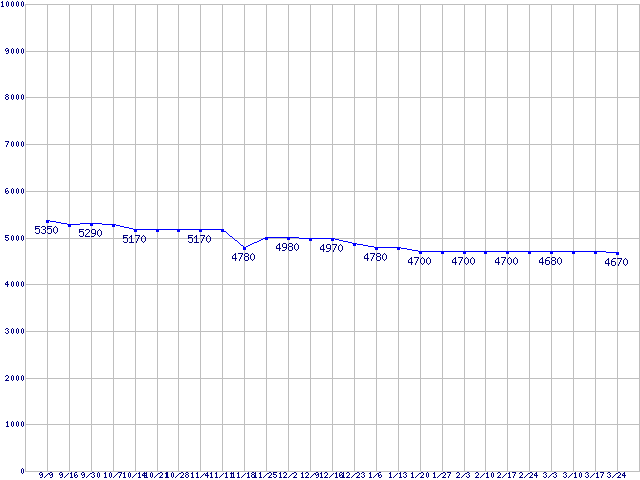 | DESKSTAR (7200rpm,3Gb/s)の最安値推移 |