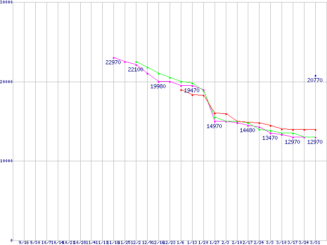 | HDD 3TB以上の最安値推移 |