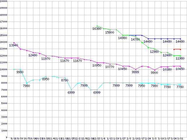 | ※製品名をクリックすると個別のグラフを表示します ※点線部は販売店が確認できなかった、または調査データがないことを示します | |