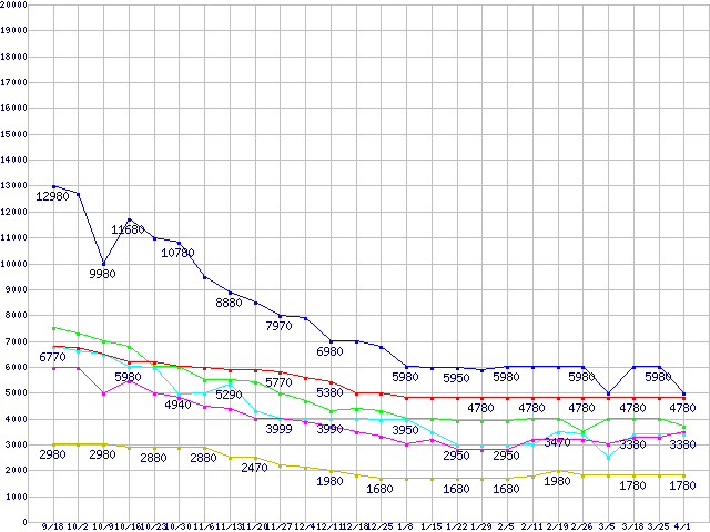| ※製品名をクリックすると個別のグラフを表示します ※点線部は販売店が確認できなかった、または調査データがないことを示します | |