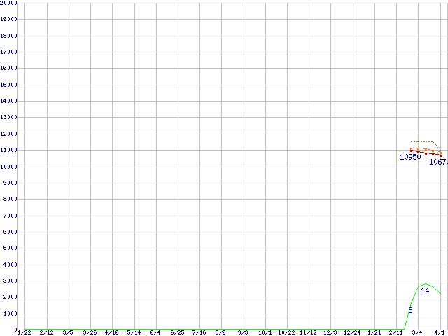 Core i3-2100 (3.1GHz,TDP 65W)の価格推移↑前グラフ↓次グラフ(2010年1月22日〜2011年4月1日)※このグラフは過去のデータも税率5%相当に調整した税込み相当額のグラフです。●関連グラフCPU主要製品の最安値推移CPU主要製品(最安値1万円〜2万円未満)の最安値推移Intel系CPUの最安値推移LGA1155 (Smart Cache 3MB,Dual Core,GPU内蔵,Hyper-Threading)の最安値推移●凡例最安値(点線部は販売店未確認または未調査)平均値最高値ショップ数