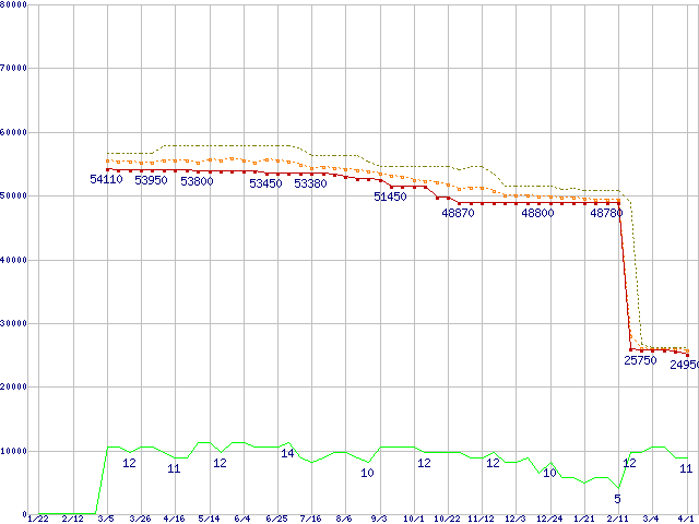 Core i7-960 (3.20GHz)の価格推移↑前グラフ↓次グラフ(2010年1月22日〜2011年4月1日)※このグラフは過去のデータも税率5%相当に調整した税込み相当額のグラフです。●関連グラフCPU主要製品の最安値推移CPU主要製品(最安値2万円〜3万円未満)の最安値推移Intel系CPUの最安値推移LGA1366 (QPI 4.8GT/s,L3キャッシュ8MB,Quad Core,Hyper-Threading,TDP 130W)の最安値推移●凡例最安値(点線部は販売店未確認または未調査)平均値最高値ショップ数