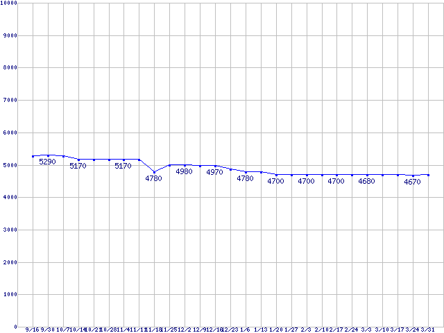 | DESKSTAR (7200rpm,3Gb/s)の最安値推移 |