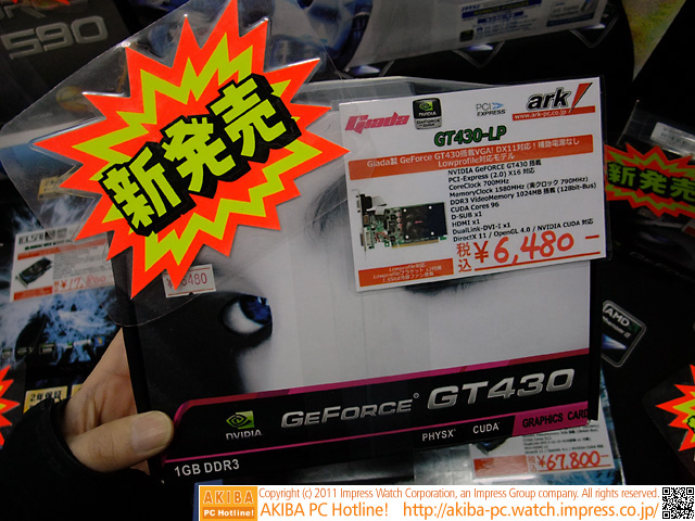 AKIBA PC Hotline! 2011年4月2日号今週見つけた新製品:ビデオカード [拡大画像]Giada GT430-LP(GT430LP HV1083-10 1G/128bit D3)[記事に戻る]→次の画像