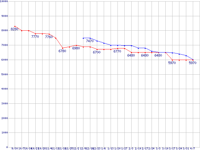 | ※製品名をクリックすると個別のグラフを表示します ※点線部は販売店が確認できなかった、または調査データがないことを示します |