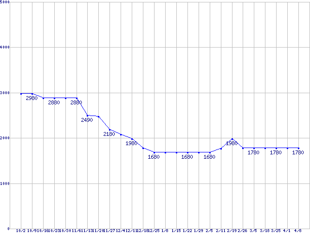 | ※製品名をクリックすると個別のグラフを表示します ※点線部は販売店が確認できなかった、または調査データがないことを示します |