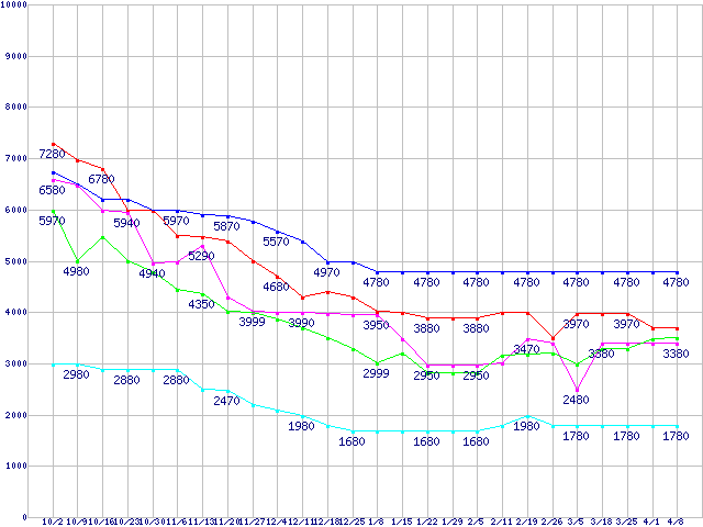 | ※製品名をクリックすると個別のグラフを表示します ※点線部は販売店が確認できなかった、または調査データがないことを示します | |