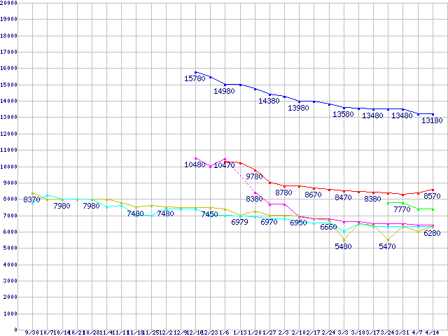 | ※製品名をクリックすると個別のグラフを表示します ※点線部は販売店が確認できなかった、または調査データがないことを示します | |