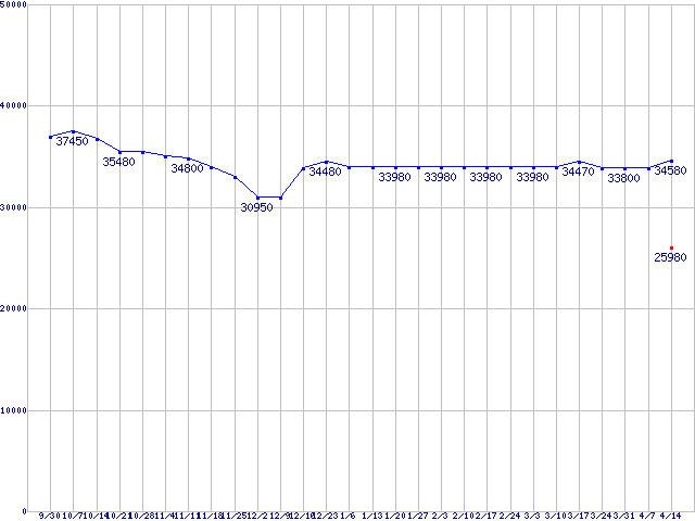 | HDD 160〜200GB未満の最安値推移 |