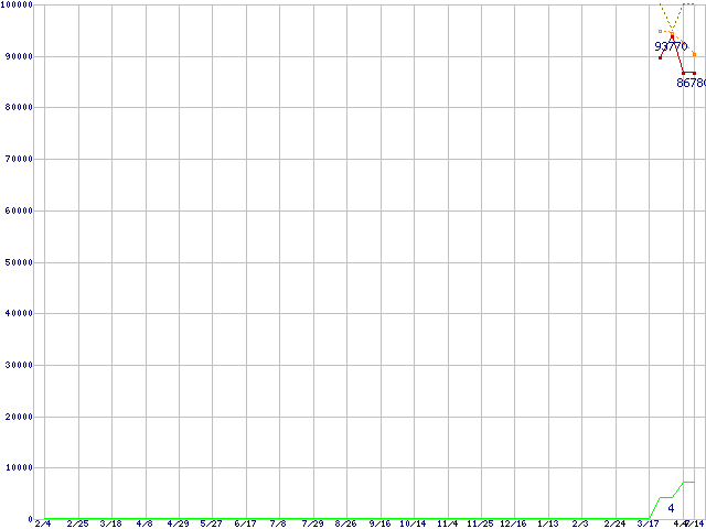 MTFDDAC512MAM-1K1 (512GB,MLC)の価格推移↑前グラフ↓次グラフ(2010年2月4日〜2011年4月14日)※このグラフは過去のデータも税率5%相当に調整した税込み相当額のグラフです。●関連グラフHDD/SSD主要製品の最安値推移HDD/SSD主要製品(最安値2万円以上)の最安値推移HDD 500〜600GB未満の最安値推移RealSSD C400 (SSD,6Gbps,2.5インチ,リード415MB/s・ライト260〜95MB/s)の最安値推移●凡例最安値(点線部は販売店未確認または未調査)平均値最高値ショップ数