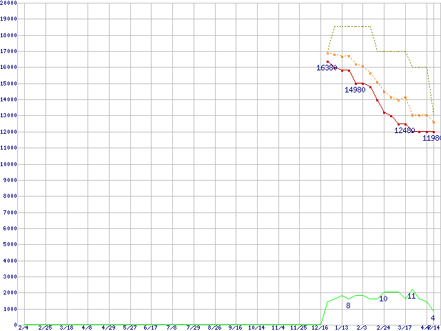 PX-64M2S (64GB,MLC)の価格推移↑前グラフ↓次グラフ(2010年2月4日〜2011年4月14日)※このグラフは過去のデータも税率5%相当に調整した税込み相当額のグラフです。●関連グラフHDD/SSD主要製品の最安値推移HDD/SSD主要製品(最安値1万円〜1万5千円未満)の最安値推移HDD/SSD 60GB〜80GB未満の最安値推移M2S (SSD,6Gbps,2.5インチ,リード400〜300MB/s・ライト300〜100MB/s)の最安値推移●凡例最安値(点線部は販売店未確認または未調査)平均値最高値ショップ数