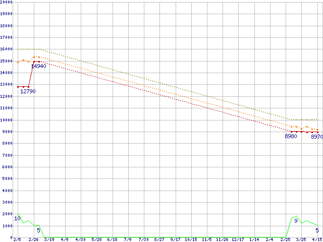 Phenom II X4 905e (2.5GHz,L2 512KB×4,L3 6MB,TDP 65W)の価格推移↑前グラフ↓次グラフ(2010年2月5日〜2011年4月15日)※このグラフは過去のデータも税率5%相当に調整した税込み相当額のグラフです。●関連グラフCPU主要製品の最安値推移CPU主要製品(最安値1万円未満)の最安値推移AMD系CPUの最安値推移Socket AM3 (HyperTransport 3.0,Quad Core)の最安値推移●凡例最安値(点線部は販売店未確認または未調査)平均値最高値ショップ数