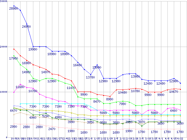 | ※製品名をクリックすると個別のグラフを表示します ※点線部は販売店が確認できなかった、または調査データがないことを示します | |
