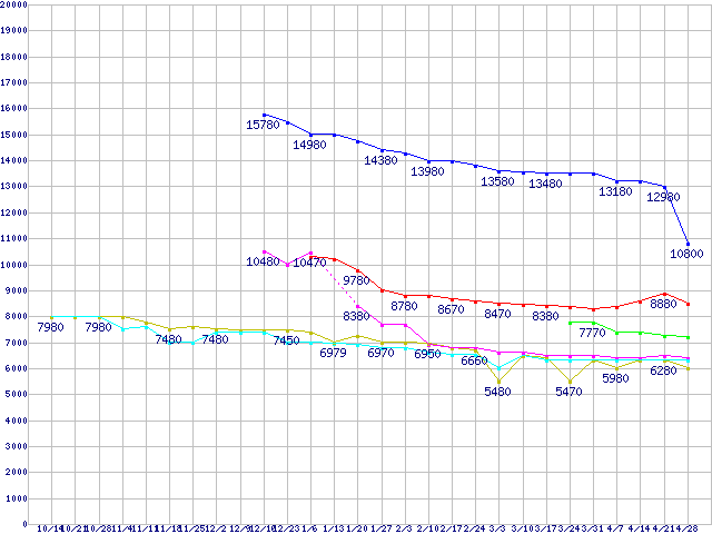 | ※製品名をクリックすると個別のグラフを表示します ※点線部は販売店が確認できなかった、または調査データがないことを示します | |
