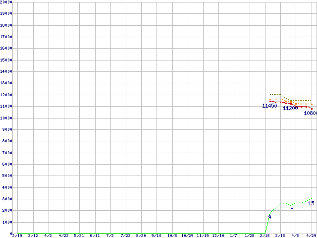 Core i3-2100T (2.50GHz,TDP 35W)の価格推移↑前グラフ↓次グラフ(2010年2月19日〜2011年4月29日)※このグラフは過去のデータも税率5%相当に調整した税込み相当額のグラフです。●関連グラフCPU主要製品の最安値推移CPU主要製品(最安値1万円〜2万円未満)の最安値推移Intel系CPUの最安値推移LGA1155 (Smart Cache 3MB,Dual Core,GPU内蔵,Hyper-Threading)の最安値推移●凡例最安値(点線部は販売店未確認または未調査)平均値最高値ショップ数